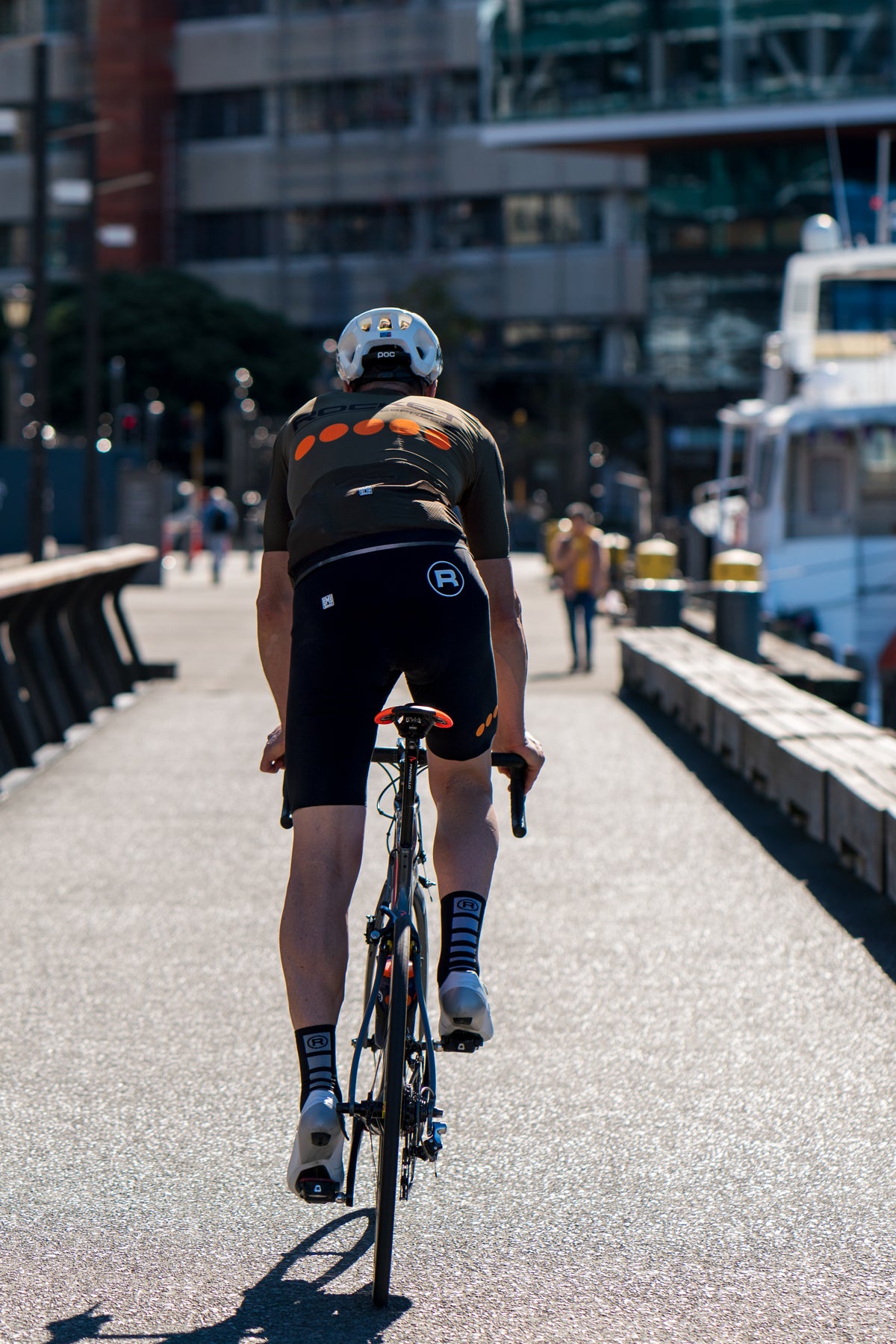 The kit is ultralight and breathable, aerodynamically cut and also offers excellent UV protection (SPF 50+). Heat sealed seams guarantee a body hugging fit that optimizes air flow around the body. Made from Prey fabric with Flow inserts, the REDUX jersey is stretchy and exerts a gentle compression, reducing drag during high speed training sessions. The rear pockets are made with virtually invisible, laser cut heat sealed opening that lay flat when riding.