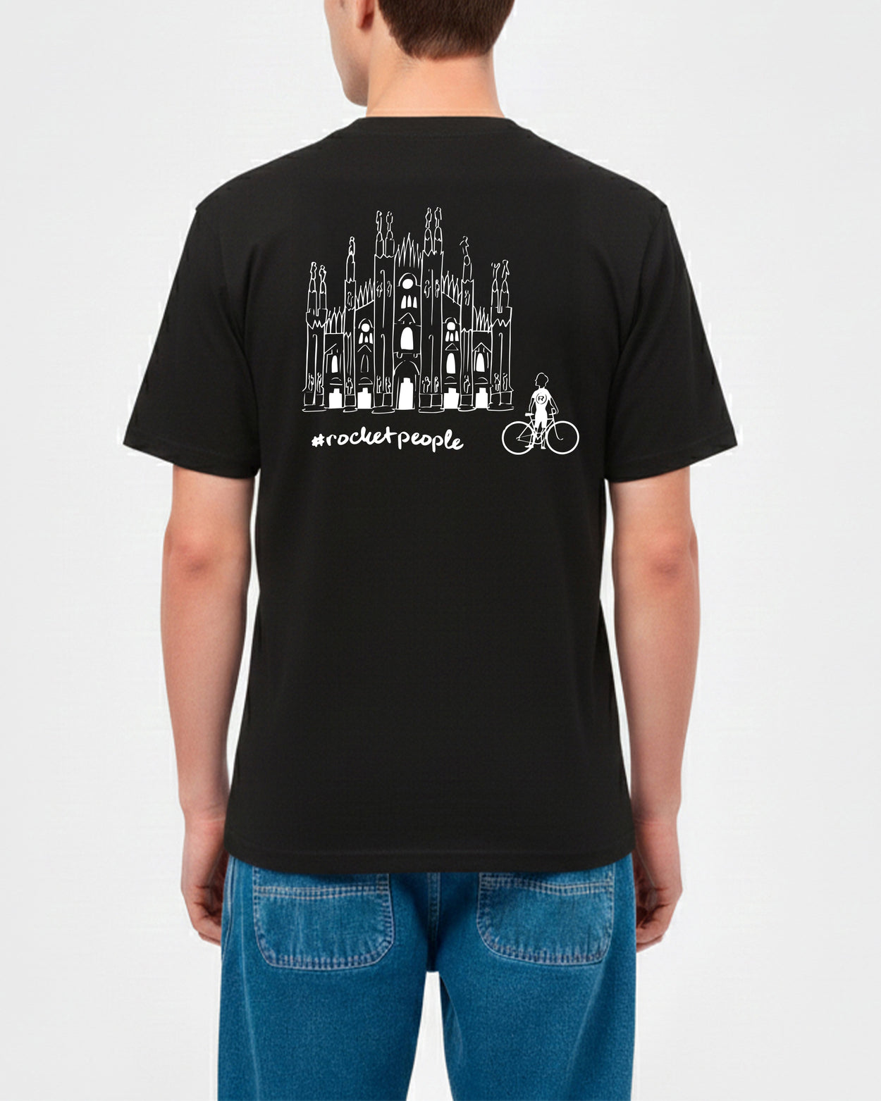 Crafted in premium cotton and available in black or white, each tee features the Rocket Espresso logo on the front and a detailed Duomo Cathedral illustration on the back.